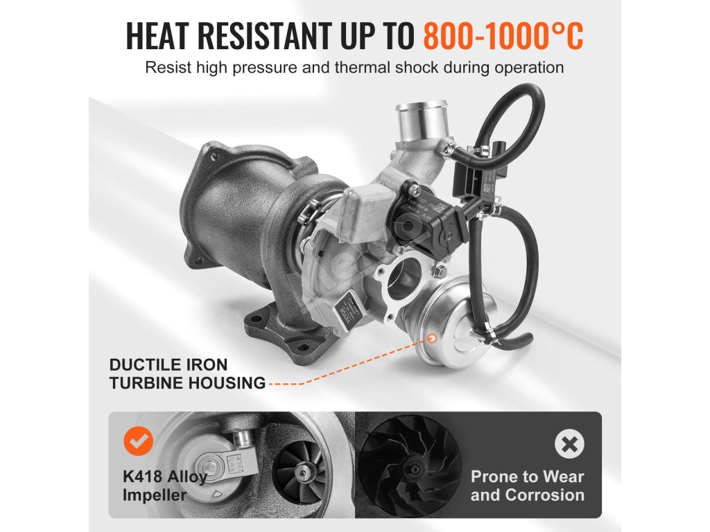Obežné koleso je vyrobené z liatej zliatiny na báze niklu K418, materiálu odolného voči vysokým teplotám, ktorý si zachováva optimálny výkon aj pri dlhodobo vysokých teplotách, čím predlžuje životnosť turbodúchadla motora.