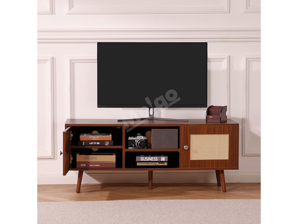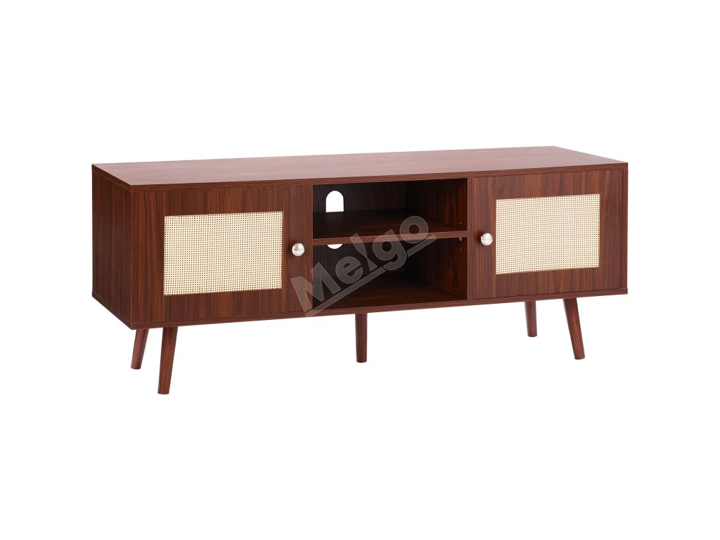 Ratanový televízny stolík pre 55 inch tv, nastaviteľné police, orech