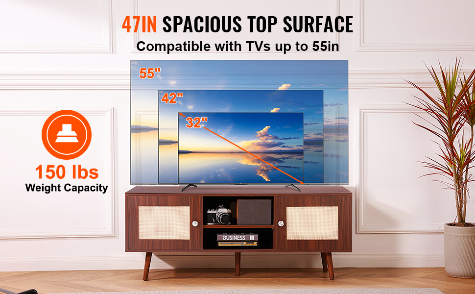 Stolík s rozmermi 47 × 16 palcov pojme 55-palcový televízor a unesie až 150 kg. Ak ju nepoužívate na TV, ratanová TV konzola je ideálna aj na vystavenie dekoratívnych predmetov.