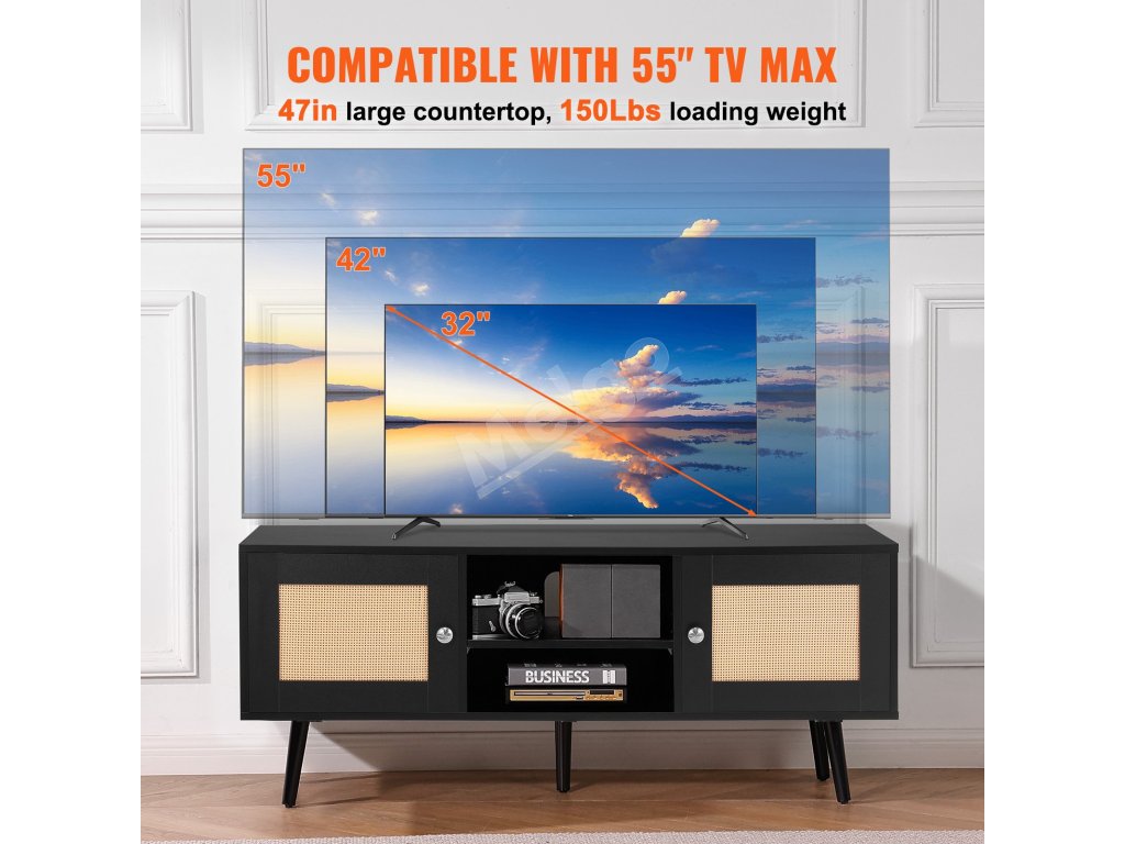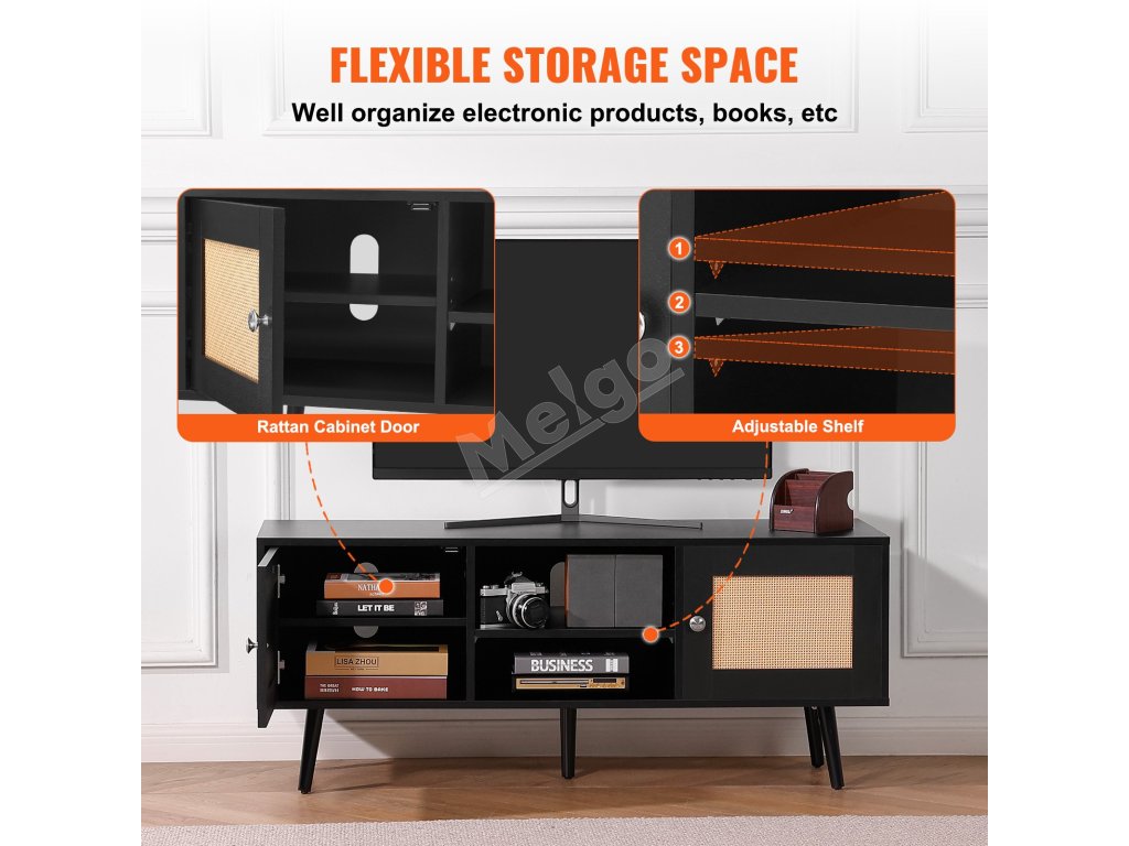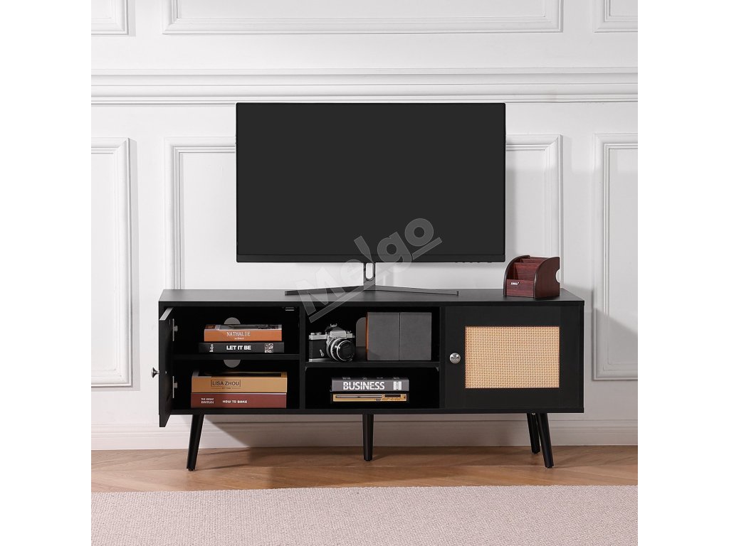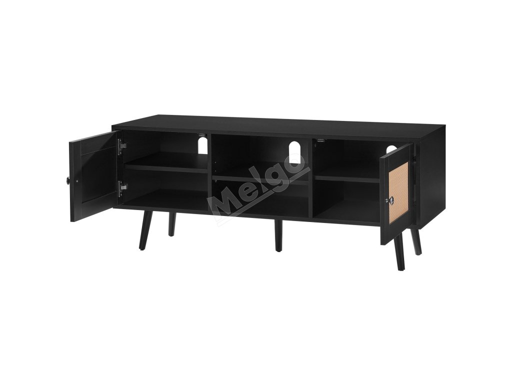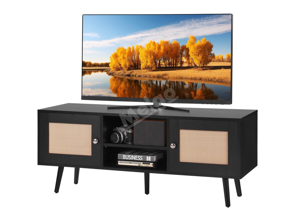Stojan na tv 55 inch ratan čierny mid century nastaviteľné police