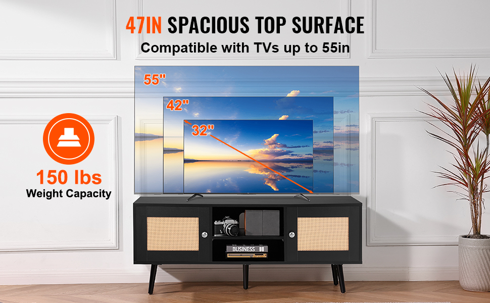 Stolík s rozmermi 47 × 16 palcov pojme 55-palcový televízor a unesie až 150 kg. Ak ju nepoužívate na TV, ratanová TV konzola je ideálna aj na vystavenie dekoratívnych predmetov.