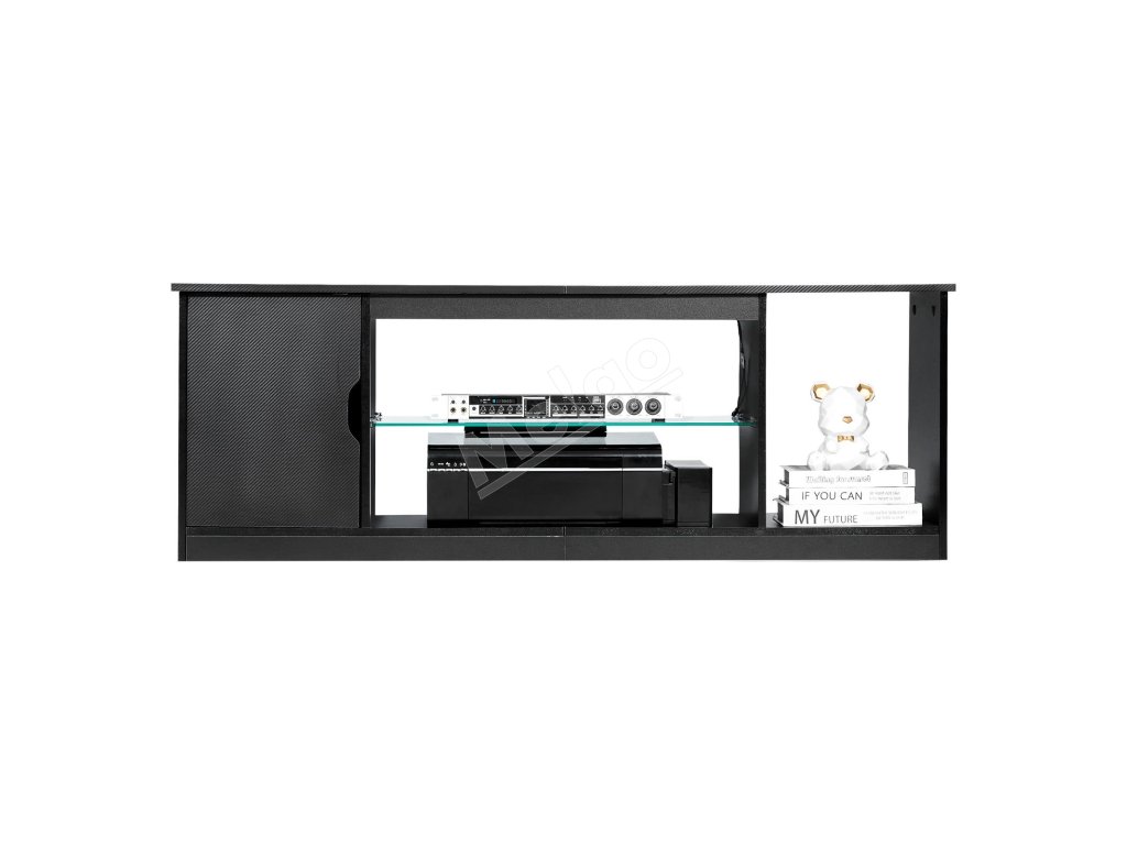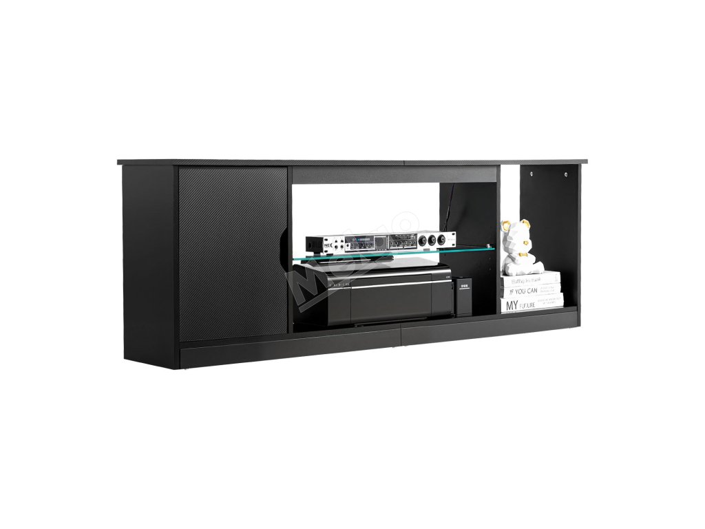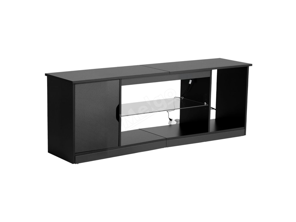 Tv stolík do 1651 mm, drevený s led pásikom, sklenená polica, čierny