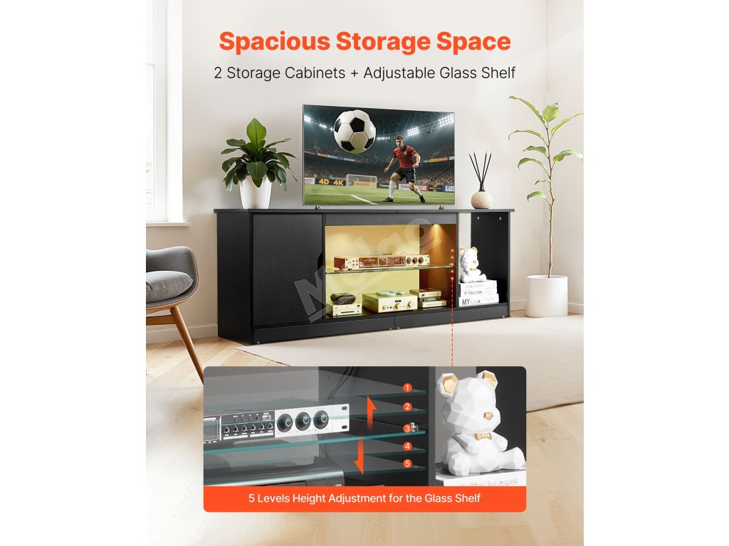 Tento moderný minimalistický úložný TV stojan bez námahy pojme veľkoplošné televízory a zároveň poskytuje priestor na usporiadanie herných konzol, routerov a ďalších zariadení - vďaka tomu bude vaša obývacia izba bez neporiadku. Premeňte svoj priestor na elegantné, moderné zábavné centrum!