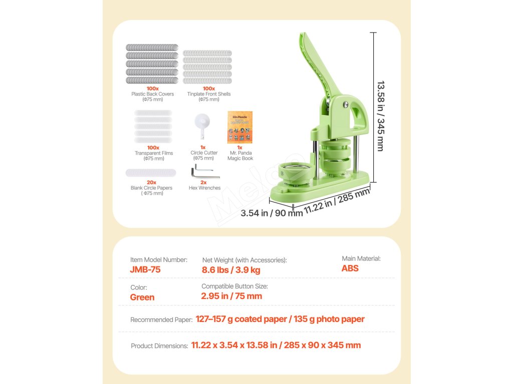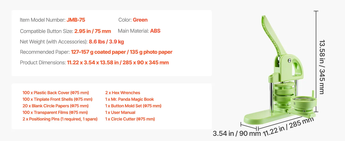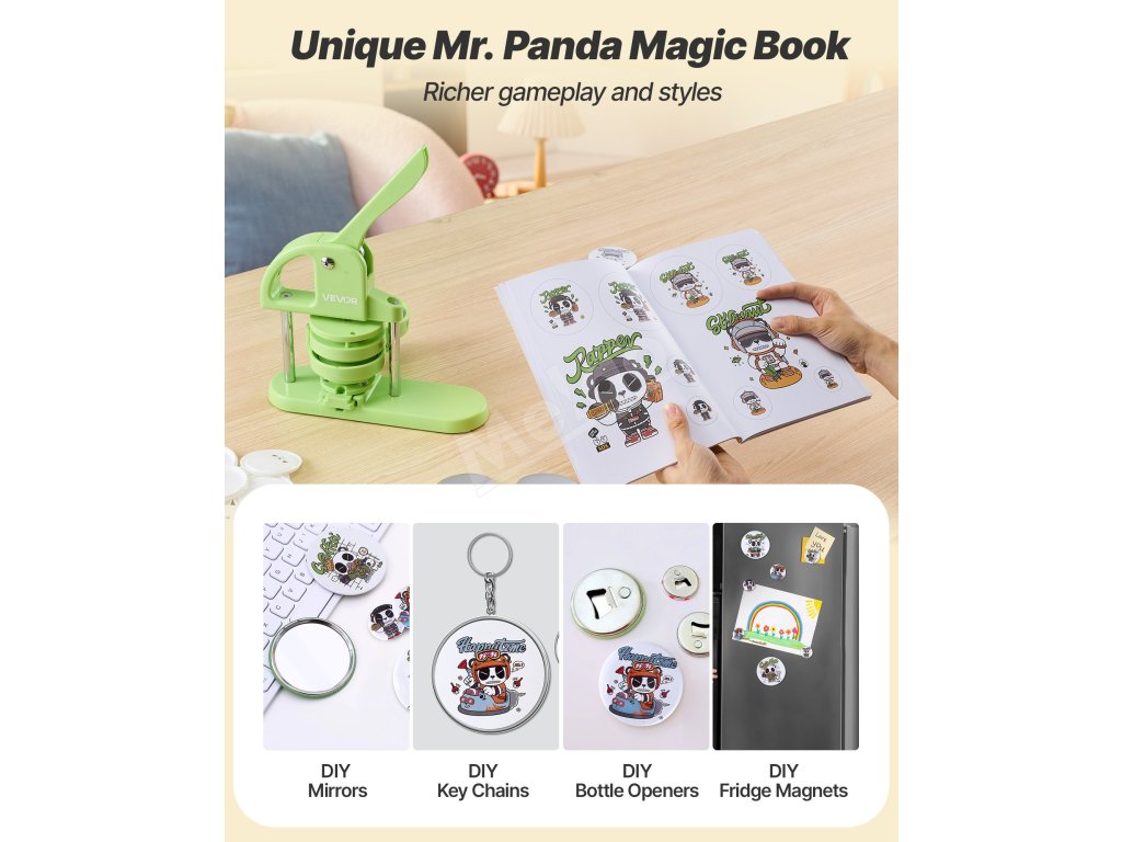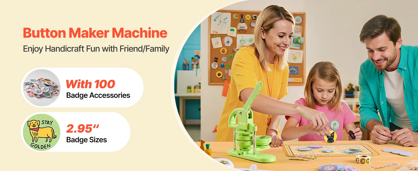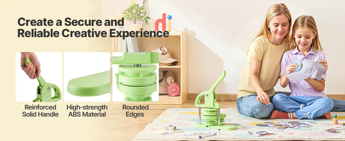 Tento jednoduchý a používateľsky prívetivý stroj na výrobu tlačidiel nevyžaduje zložitú inštaláciu. Zabezpečuje presné zarovnanie vzoru. Či už ide o stmelenie rodiny alebo kreatívnu hru s priateľmi, prináša zábavný a pútavý zážitok z kutilstva, ktorý podnecuje kreativitu a zbližuje ľudí.