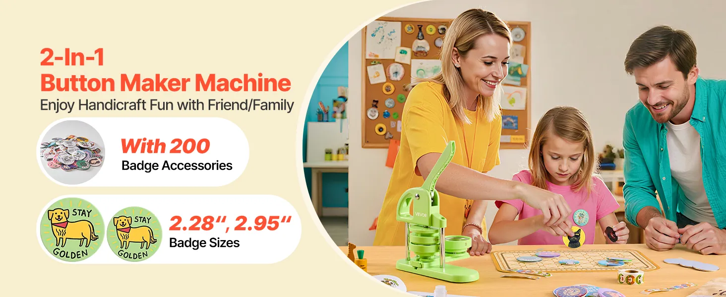 Tento jednoduchý a používateľsky prívetivý stroj na výrobu tlačidiel nevyžaduje zložitú inštaláciu. Zabezpečuje presné zarovnanie vzoru. Či už ide o stmelenie rodiny alebo kreatívnu hru s priateľmi, prináša zábavný a pútavý zážitok z kutilstva, ktorý podnecuje kreativitu a zbližuje ľudí.