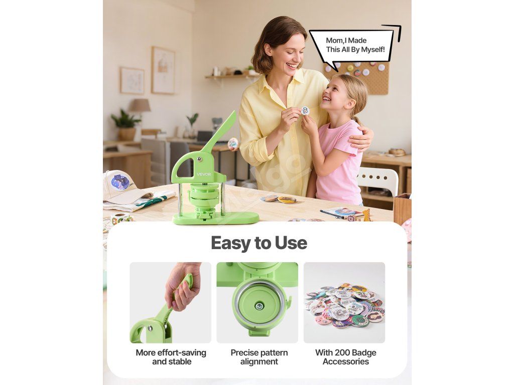 Tento jednoduchý a používateľsky prívetivý stroj na výrobu tlačidiel nevyžaduje zložitú inštaláciu. Zabezpečuje presné zarovnanie vzoru. Či už ide o stmelenie rodiny alebo kreatívnu hru s priateľmi, prináša zábavný a pútavý zážitok z kutilstva, ktorý podnecuje kreativitu a zbližuje ľudí.