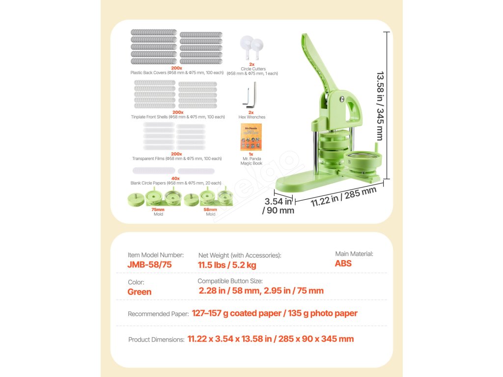Stroj na výrobu odznakov 2 v 1, 58 mm / 75 mm, 200 ks dielov