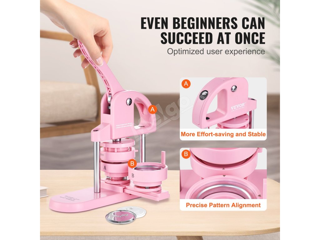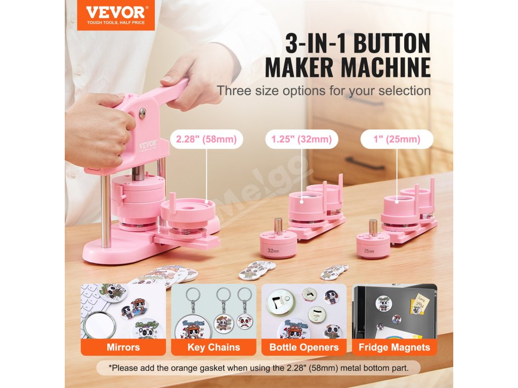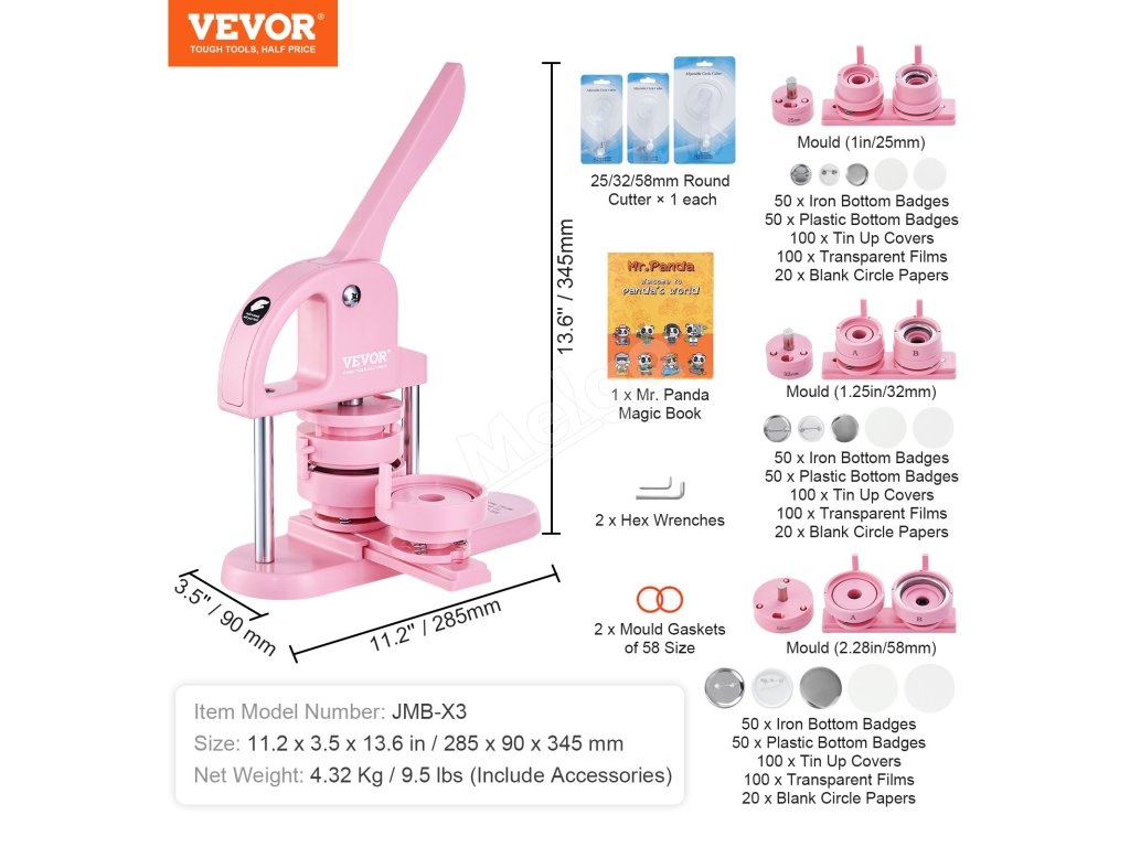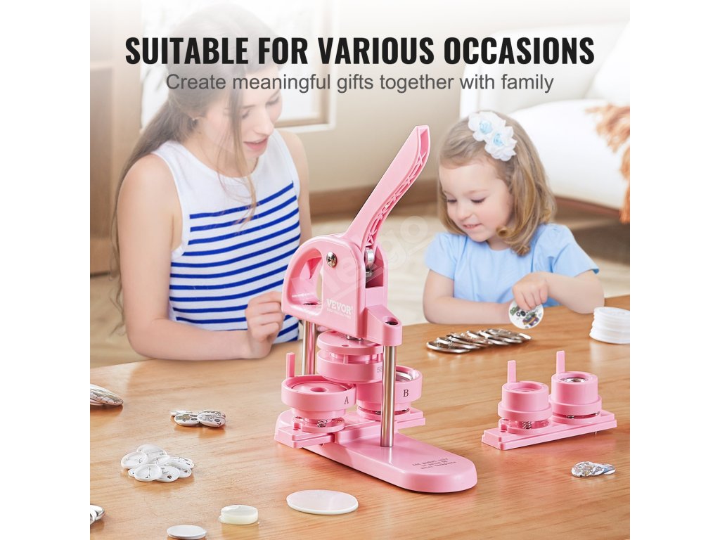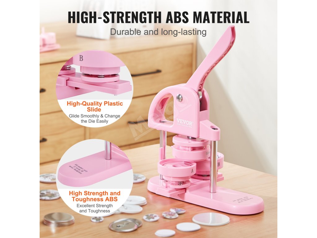 Stroj na výrobu odznakov 3-v-1 25/32/58mm, 300 dielov, ružový