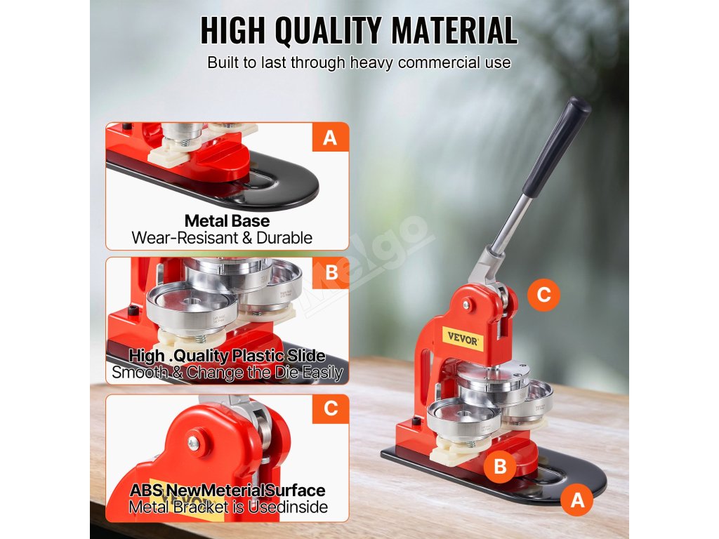 Strojček na výrobu gombíkov je vyrobený z vysokokvalitného železa a povrch je potiahnutý novým materiálom ABS, ktorý je pevný, odolný a má dlhú životnosť.