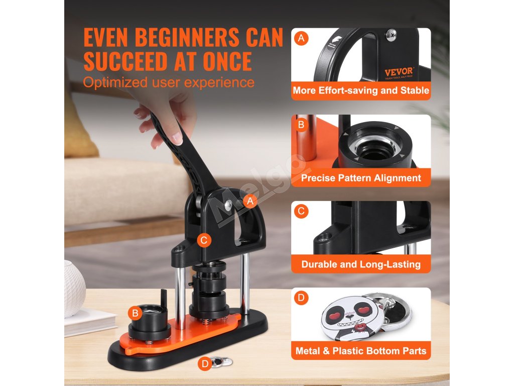 Náš používateľsky prívetivý prémiový špendlíkový stroj nevyžaduje žiadnu inštaláciu a je pripravený na použitie po vybalení z krabice. Možno ho používať s medeným papierom 127-157 g na výrobu odznakov, je bezpečný na ovládanie a je vhodný pre vás a vašu rodinu, aby ste si užili zábavu pri robení a darovaní.