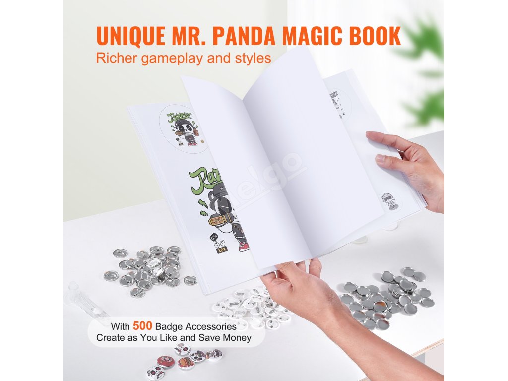 Náš stroj na výrobu odznakov sa dodáva s univerzálnou čarovnou knihou, ktorá môže zvýšiť kreativitu a kresliace schopnosti detí. Vyberte si svoj obľúbený vzor "Pán Panda" alebo si ľubovoľne vytvorte jedinečné odznaky.