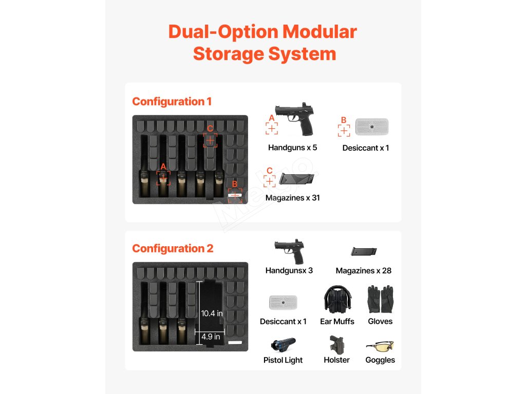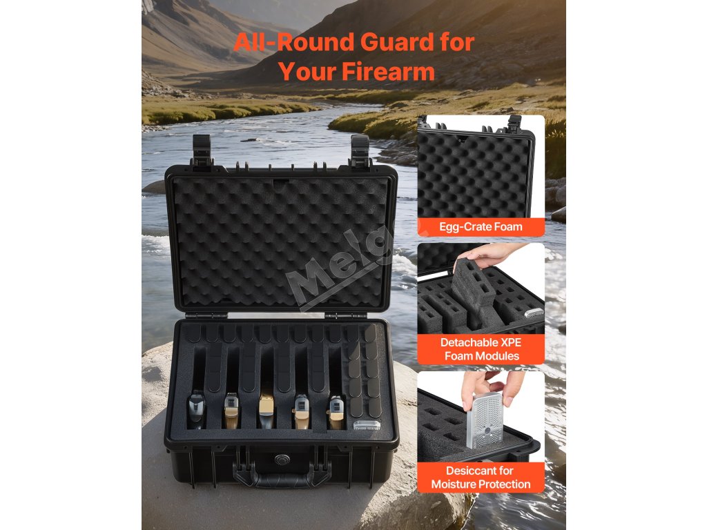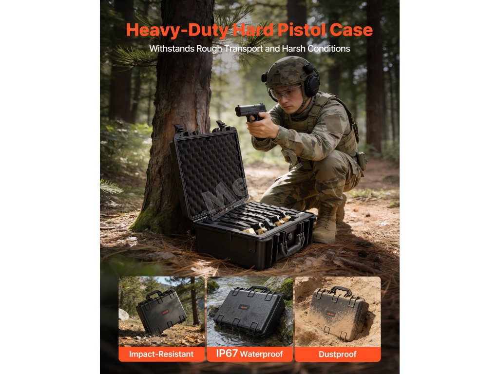 Pevné puzdro na pištole je vyrobené z pevného PP plášťa a modulárnej peny XPE, ktoré dobre chránia pištole a zásobníky, čo z neho robí dobrú voľbu pre dlhodobé skladovanie strelných zbraní a bezpečnú prepravu.