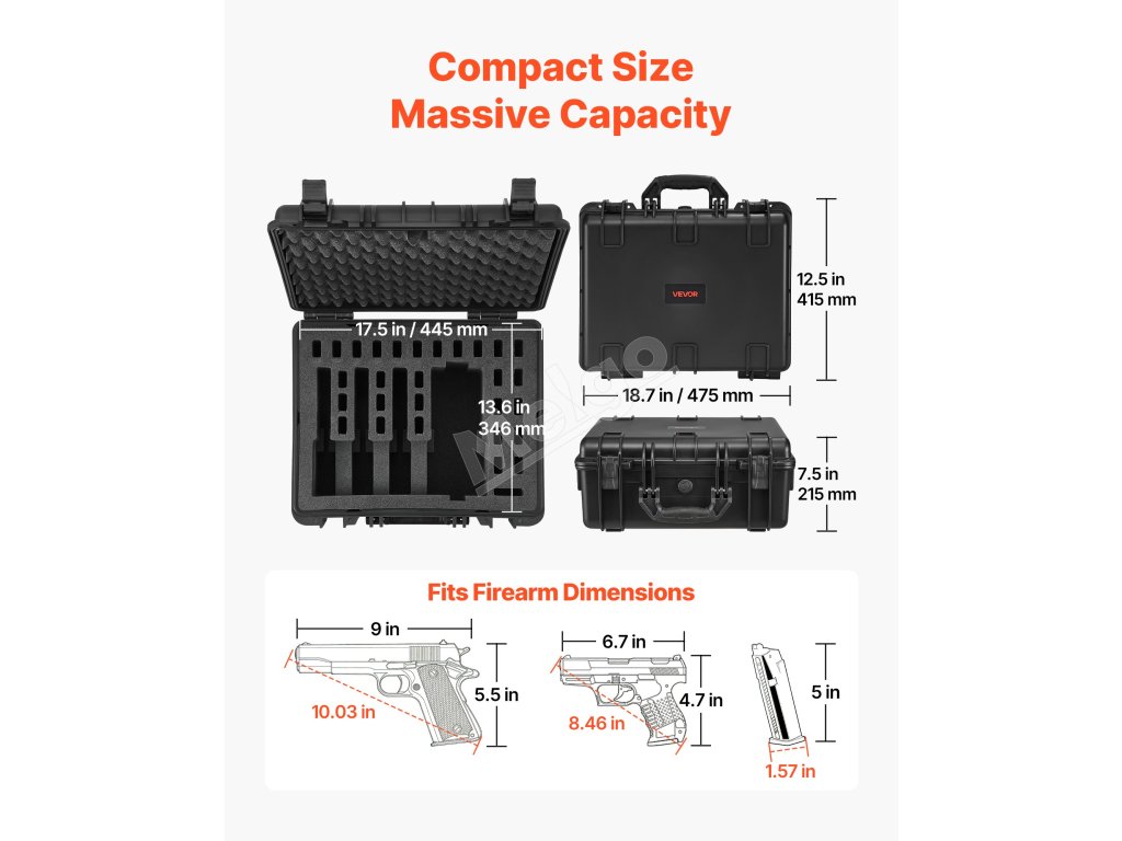 Pevný kufrík na pištoľ s xpe penou, vodeodolný, 475×415×215 mm