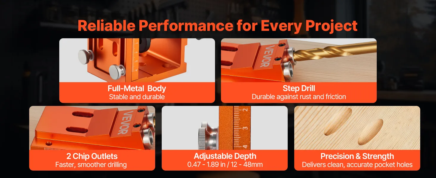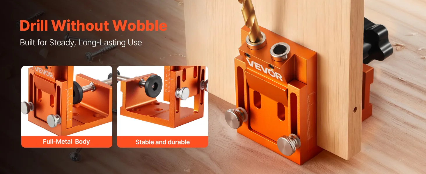 Náš systém na vŕtanie vreckových otvorov je vybavený telom z hliníkovej zliatiny a predlžovacou tyčou z nehrdzavejúcej ocele, ktoré zabezpečujú stabilitu a zabraňujú chveniu počas vŕtania. Je nastaviteľný a prenosný, vďaka čomu sa dostanete ďalej! Začnite s tesárskymi prácami a popustite uzdu svojej kreativite ako nikdy predtým.