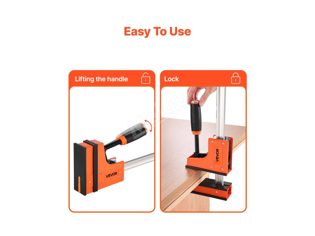 Naše svorky na drevo sa dajú bez námahy zabezpečiť na rezanie, spájanie a inštaláciu výrobkov z dreva, ako sú stoly, stoličky, skrine, a dokonca aj oceľové materiály. Paralelná čeľusť svorky zabezpečuje úplné spojenie.