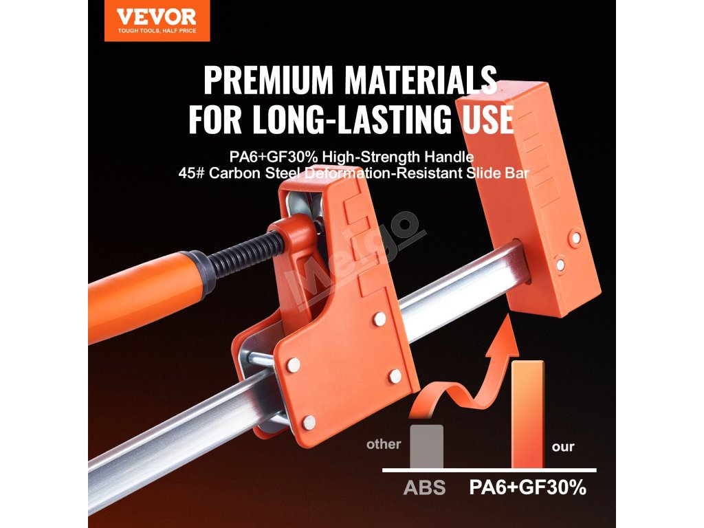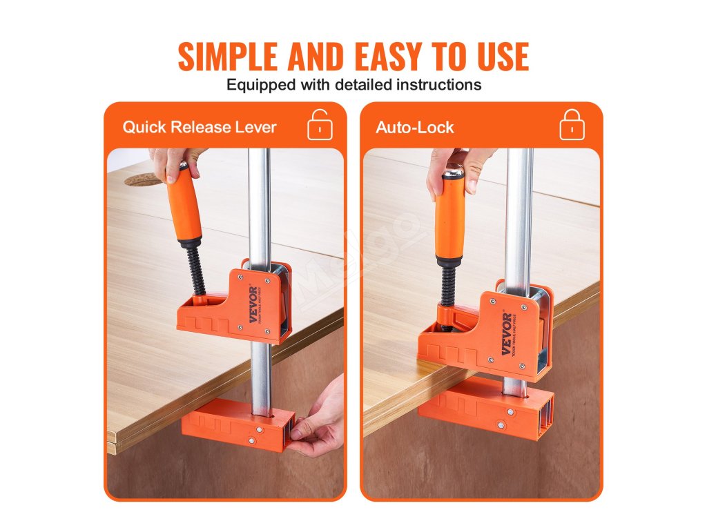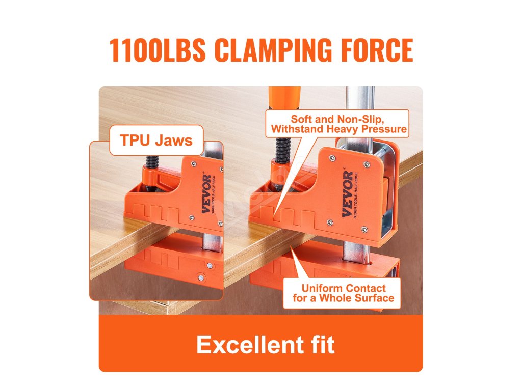 Zvládnite akúkoľvek úlohu pri obrábaní dreva s ľahkosťou vďaka robustnej upínacej sile 1100 libier. Naše svorky na drevo dokážu bez námahy zaistiť rezanie, spájanie a inštaláciu výrobkov z dreva, ako sú stoly, stoličky, skrine a dokonca aj oceľové materiály. Paralelná čeľusť svorky zaisťuje úplné spojenie.