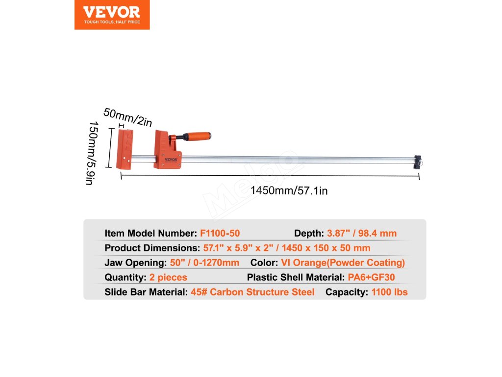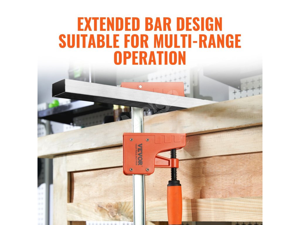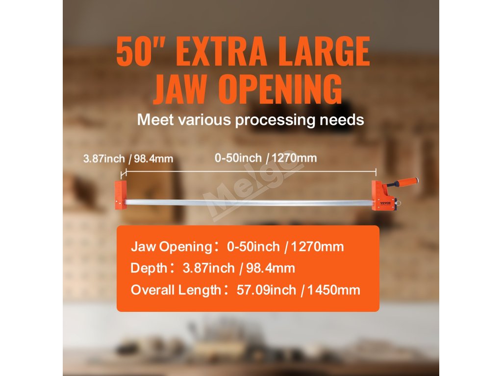 Tyčové svorky s 50-palcovým otvorom čeľustí sú navrhnuté tak, aby vyhovovali väčšine drevárskych a kovoobrábacích. Veľký otvor zabezpečuje presné polohovanie počas spracovania.