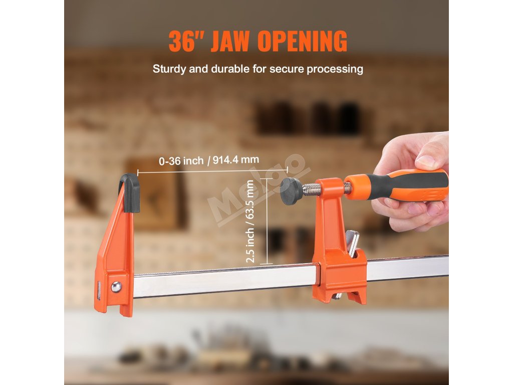 Čeľusťový otvor tyčových svoriek s priemerom 36 palcov je navrhnutý tak, aby sa doň zmestila väčšina drevín štandardnej veľkosti, čo používateľom poskytuje väčší priestor na nastavenie počas práce a zabezpečuje presné polohovanie počas spracovania.