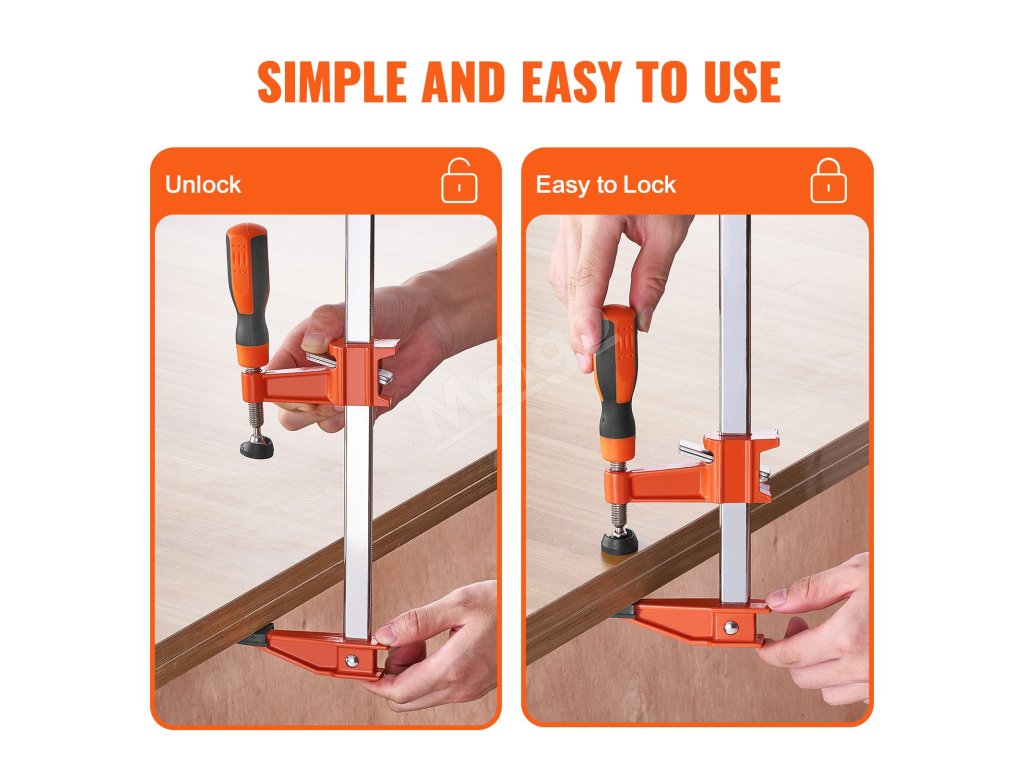 Zvládnite akúkoľvek úlohu pri spracovaní dreva s ľahkosťou vďaka robustnej upínacej sile 600 libier. Naše svorky na drevo dokážu bez námahy zabezpečiť rezanie, spájanie a inštaláciu výrobkov z dreva, ako sú stoly, stoličky, skrine a dokonca aj oceľové materiály.