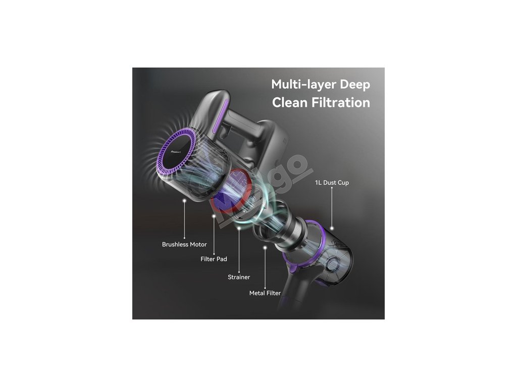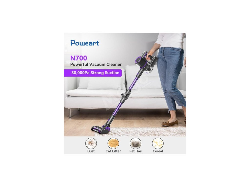 Akumulátorový vysávač POWEART N700 poskytuje najlepšie sanie na trhu 30 kPa poháňané bezkartáčovým motorom novej generácie so 120 000 otáčkami za minútu, ktorý bez námahy zdvihne usadený prach, mačacie stelivo, obilniny a nepoddajné chlpy domácich zvierat z akéhokoľvek povrchu.