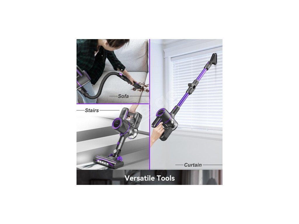 Premeníte tyčový vysávač na ručný v priebehu niekoľkých sekúnd a poradíte si s pohovkami, záclonami, interiérmi áut a úzkymi rohmi pomocou priloženého štrbinového nástroja, kefy na prach, hubice na čalúnenie a predlžovacej tyče—jeden ľahký stroj pre každú potrebu čistenia.