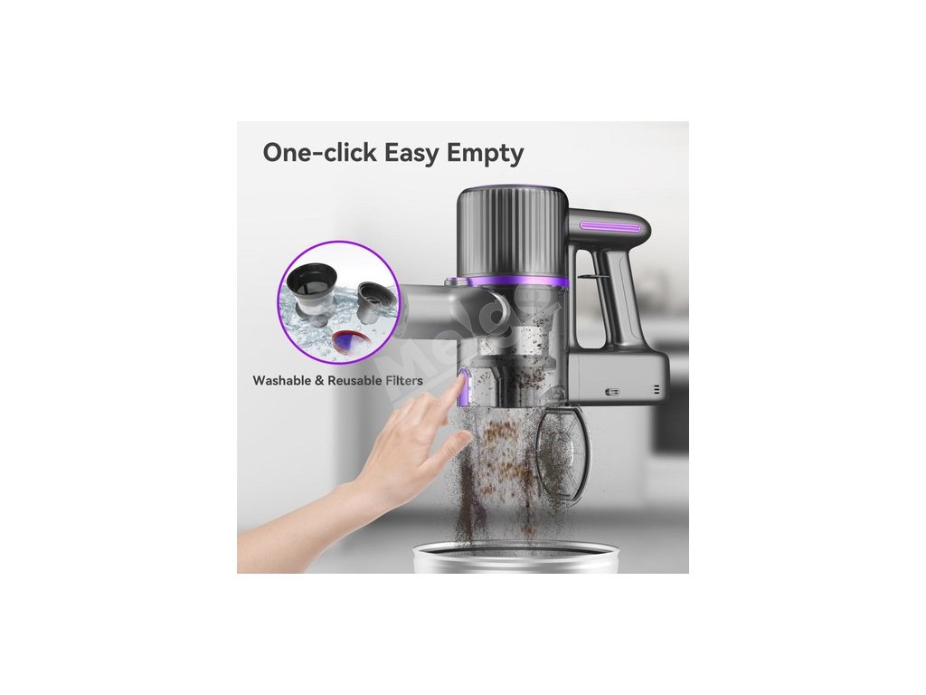 Utesnený 4-stupňový systém HEPA—kovové sitko, filtračná vložka a umývateľný filter HEPA—zachytí 99,97 % častíc s veľkosťou až 0,3 mikrometra a uvoľňuje len čistý vzduch; mimoriadne veľký 1-litrový zásobník na prach sa vyprázdni jediným stlačením a každý filter sa dá opakovane použiť a vyčistiť opláchnutím.