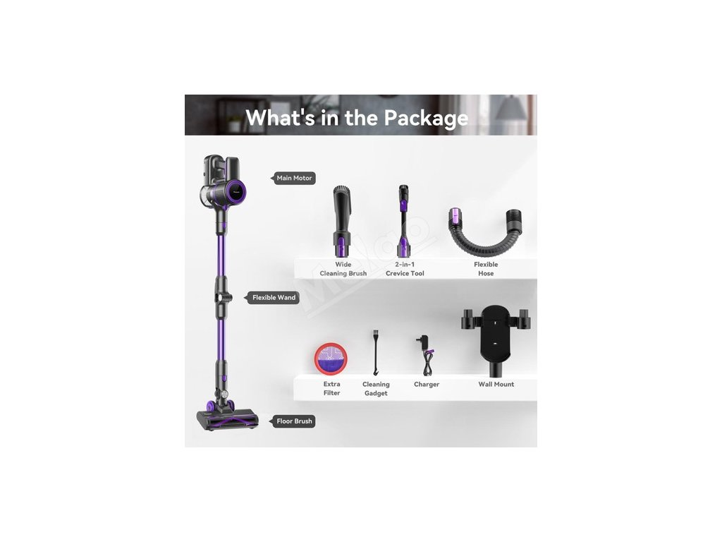 | Obsah balenia | 1 x hlavný motor 1 x ohybná tyč 1 x podlahová kefa 1 x široká čistiaca kefa 1 x revice 2 v 1 1 x ohybná hadica 1 x prídavný filter 1 x čistiaca pomôcka 1 x nabíjačka 1 x nástenný držiak |
