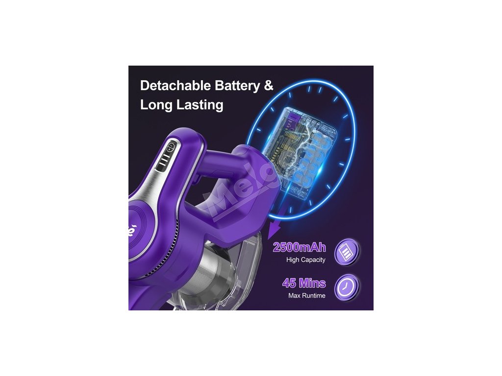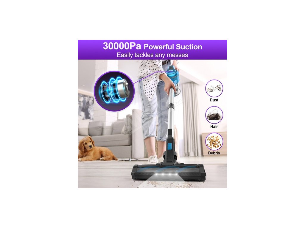 Akumulátorový vysávač je vybavený 300W pokročilým bezkartáčovým digitálnym motorom s rýchlosťou otáčania presahujúcou 120 000 ot. V režime MAX dosahuje sací výkon 30 000 Pa, čím dokáže odstrániť chlpy domácich zvierat a nečistoty z rôznych povrchov vrátane drevených podláh, kobercov s nízkym a stredným vlasom, dlaždíc, mramorových podláh atď. Tichý a čistý, čo znižuje rušenie členov rodiny a domácich zvierat.
