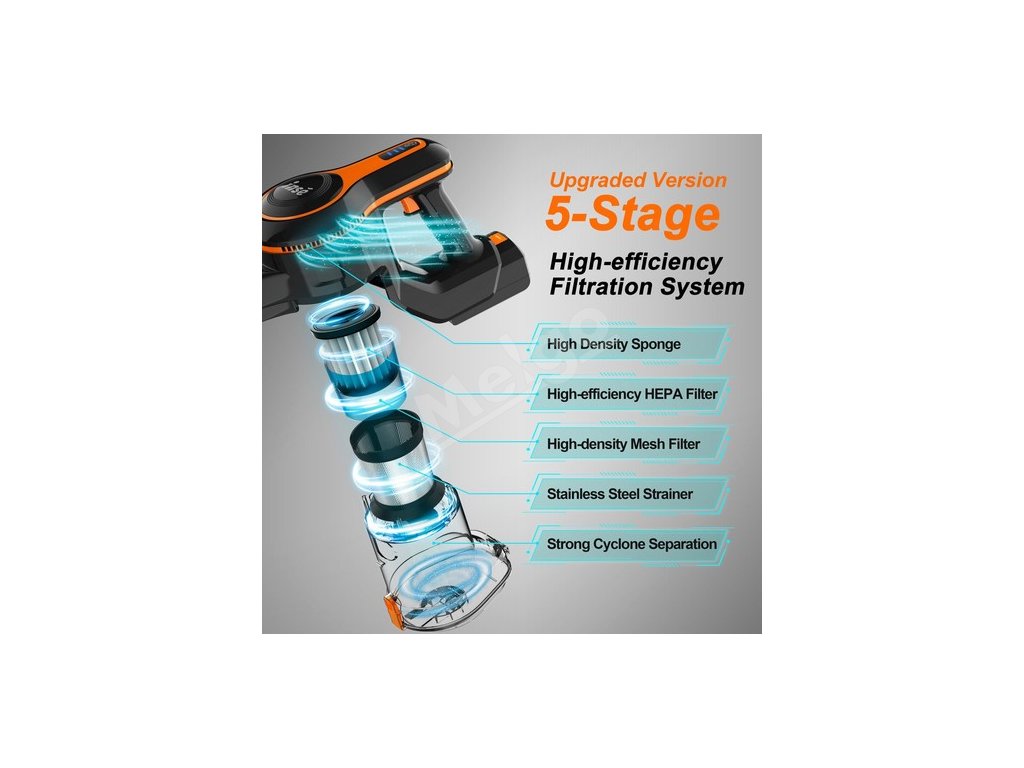 | Špecifikácia | Výkon: 250 W Napätie: 100-240 V Zástrčka: 100-240 V Prípojka: Odsávanie: 28000Pa Čas nabíjania: 5,5 hodiny Max. doba chodu: 50 minút Extra veľký zásobník na prach: 1,2 l Kapacita batérie: 3000mAh |