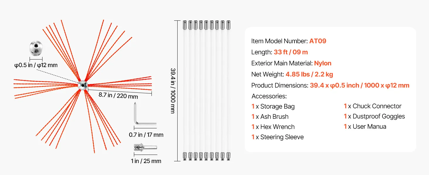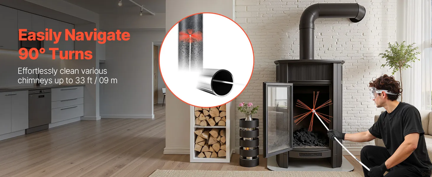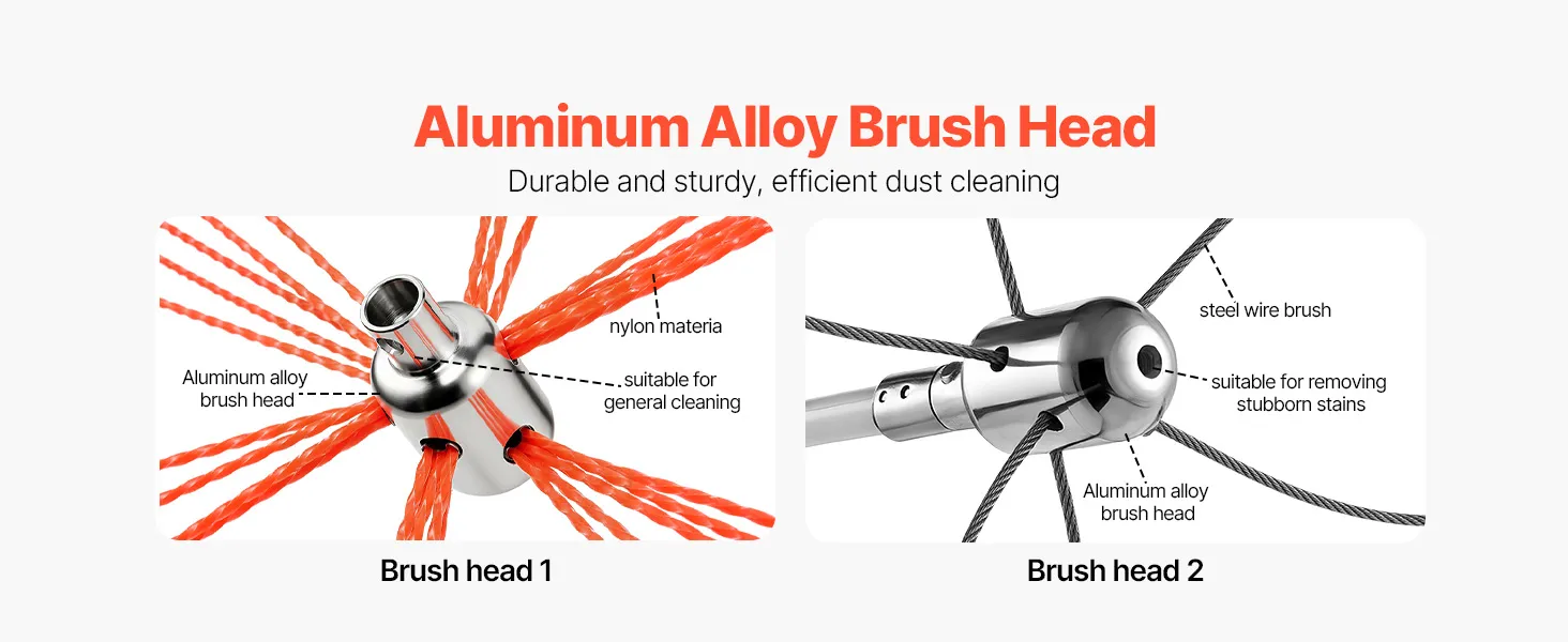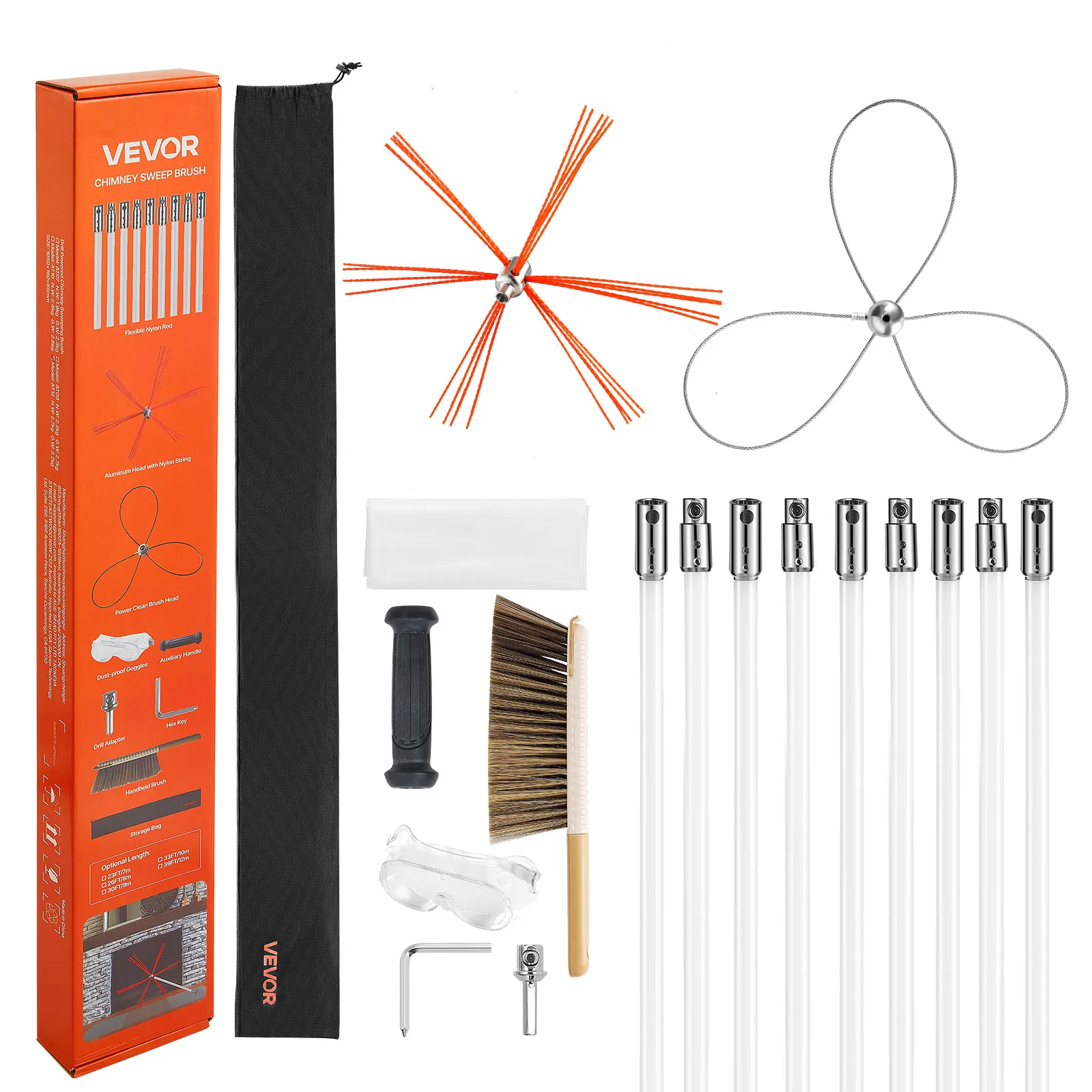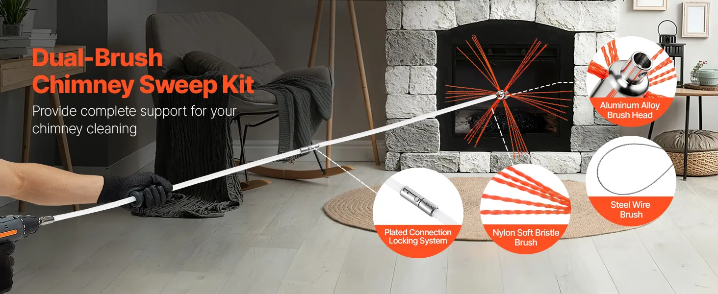 Táto súprava na čistenie komínov s dvoma kefami je navrhnutá na kompletnú starostlivosť o komín, obsahuje modernizované kefové hlavy z hliníkovej zliatiny, ochranné plastové puzdro a maximálny dosah 30 stôp / 9 m, vďaka čomu je čistenie komína jednoduchšie a efektívnejšie ako kedykoľvek predtým.