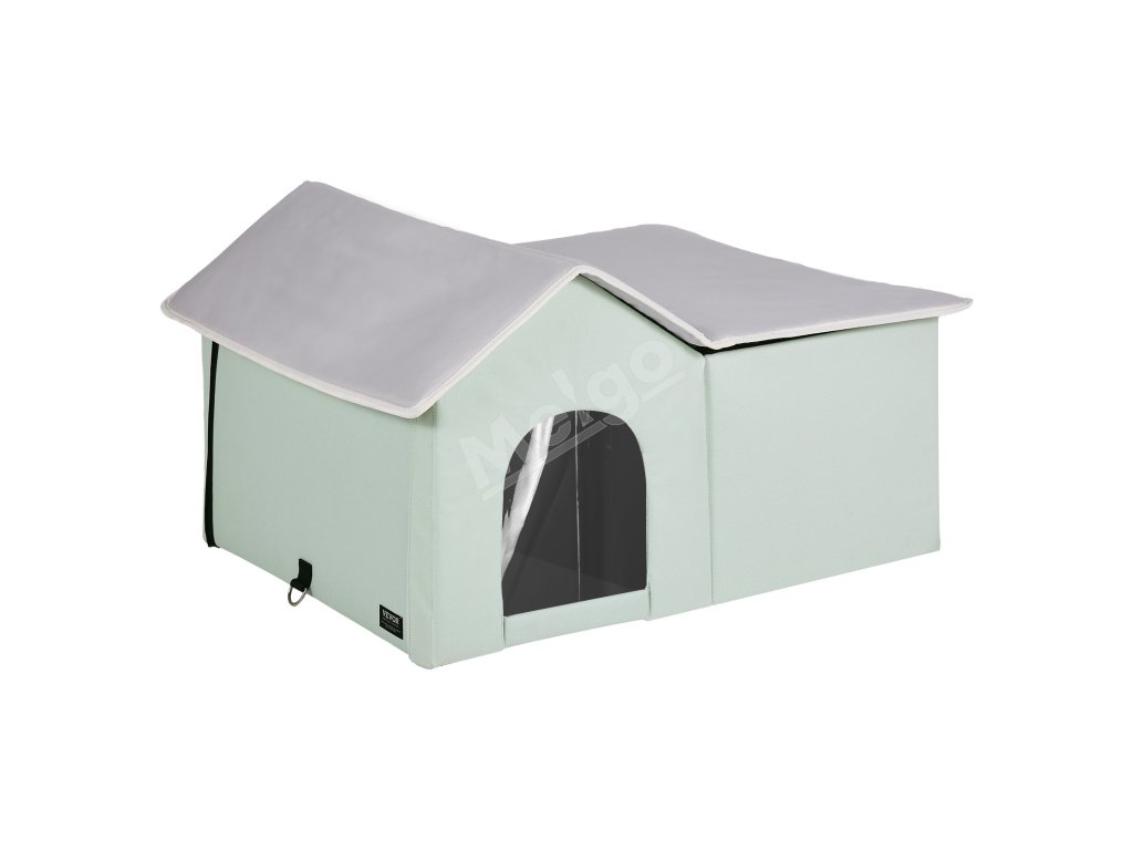 Tento prístrešok pre mačky ponúka skvelú ochranu vďaka 4 vrstvám materiálov. Vonkajšia vrstva je vyrobená z nepremokavého PVC a tkaniny 600D Oxford, ktorá zabraňuje prenikaniu dažďa, zatiaľ čo vnútorné vrstvy z hrubej perleťovej bavlny a hliníkovej fólie zvyšujú izoláciu a uzamykajú teplo.