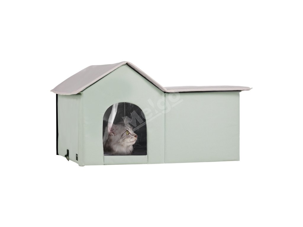 Vďaka dvojdverovej konštrukcii je každý vchod vybavený nastaviteľnými PVC závesmi, ktoré umožňujú ľahký prístup a zároveň poskytujú súkromie. Závesy blokujú studený vietor a umožňujú mačkám cítiť sa bezpečne pozorovaním okolia.