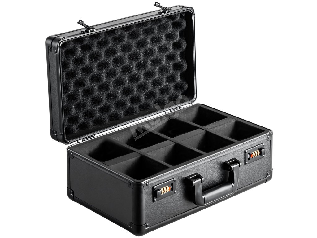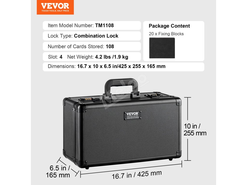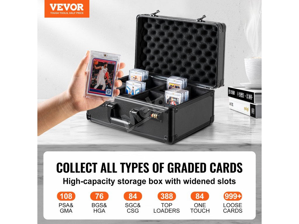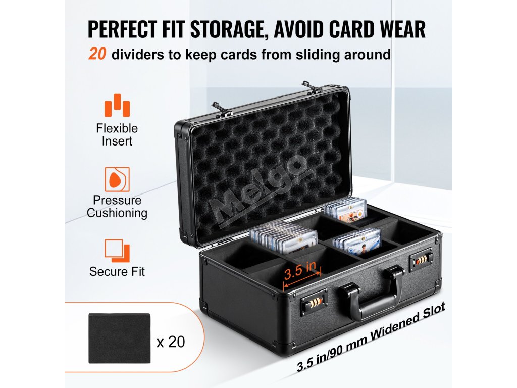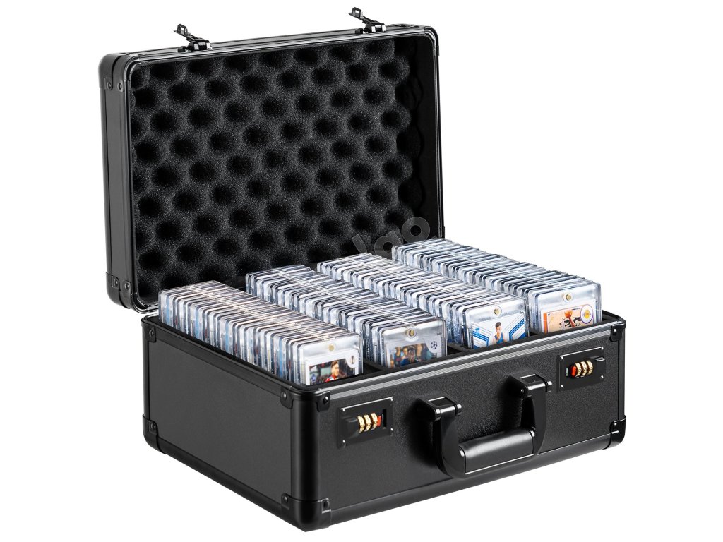 Predstavujeme vám náš kufrík na hodnotené karty s rozšíreným otvorom na karty s priemerom 3,5 palca/90 mm a 20 pružnými penovými vložkami, ktorý pojme až 108 hodnotených kariet PSA a je kompatibilný s PSA, BGS, SGC a TOP LOADERS. Vďaka kombinačnému zámku a rukoväti ochráňte svoje karty a pokojne si ich vezmite kamkoľvek so sebou!