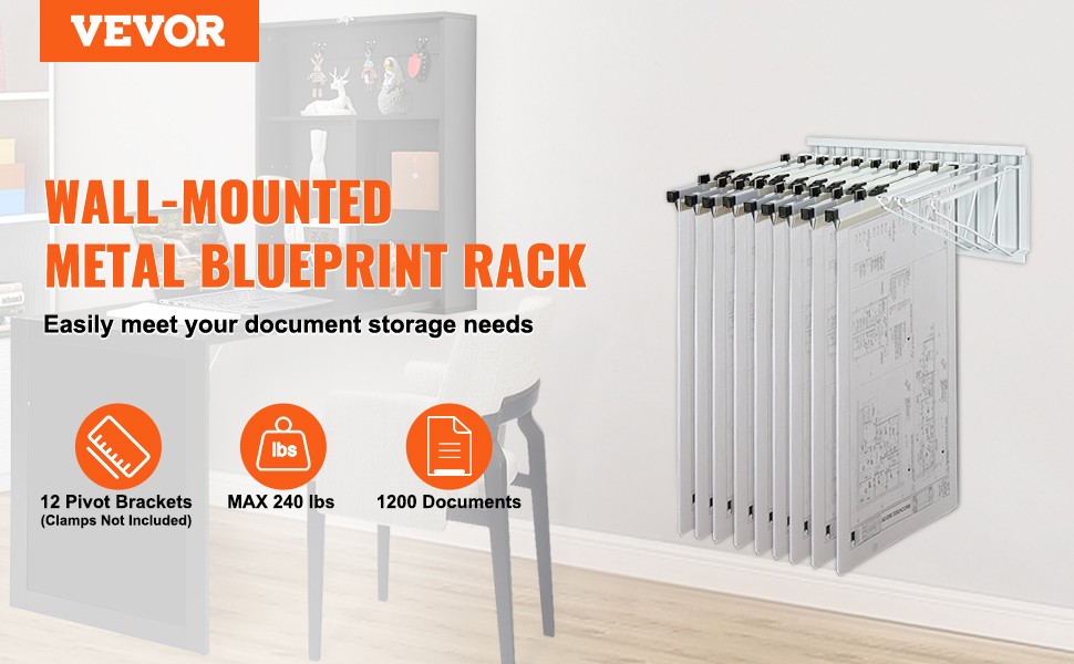 Tento nástenný držiak na modrotlač má 12 otočných konzol, ktoré udržia až 240 kg alebo maximálne 1200 listov! Ponúka organizovaný úložný priestor na modrotlač a rôzne dokumenty. Ľahko nájdete potrebné dokumenty!
