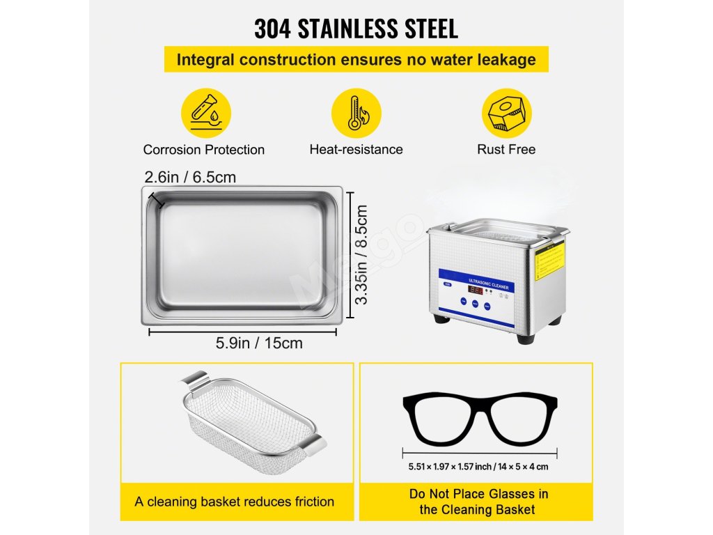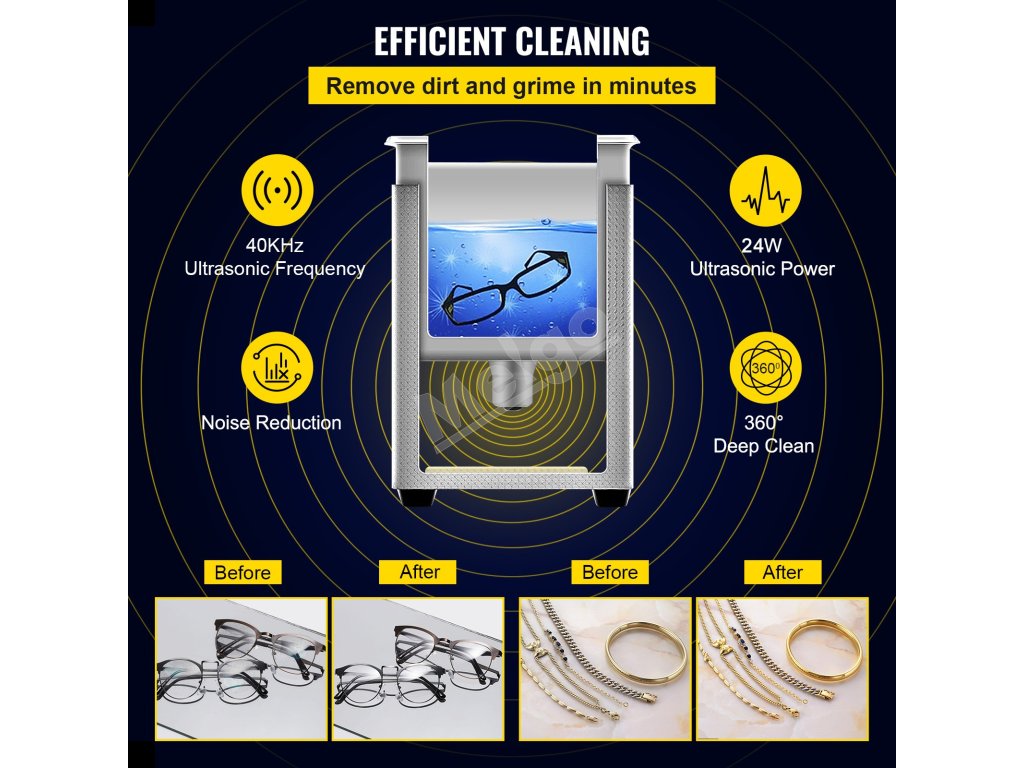 Prenosná ultrazvuková čistička, ľahko sa prenáša a skladuje. Ideálna na umývanie predmetov v rôznych oblastiach: Šperky, laboratórium, dosky s obvodmi, zubné prístroje, riad, priemysel atď. Veci budú po umytí vyzerať ako nové a lesklé.