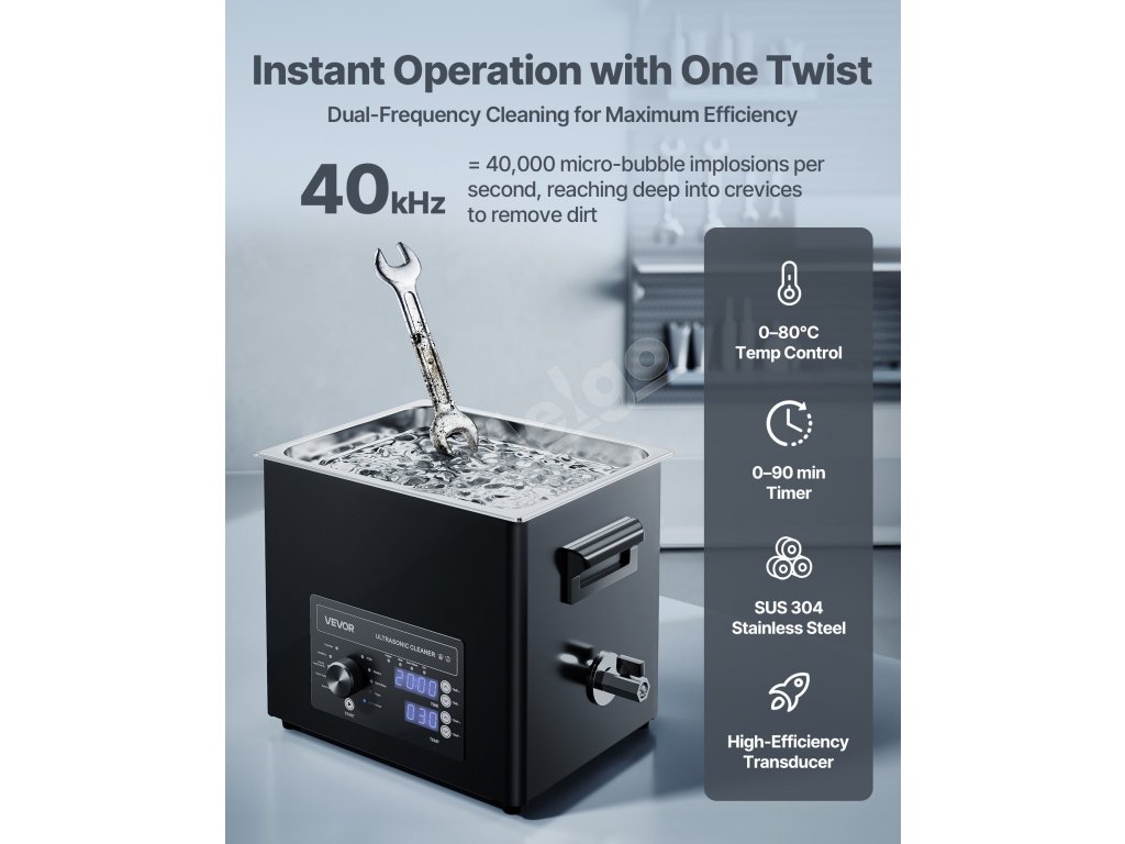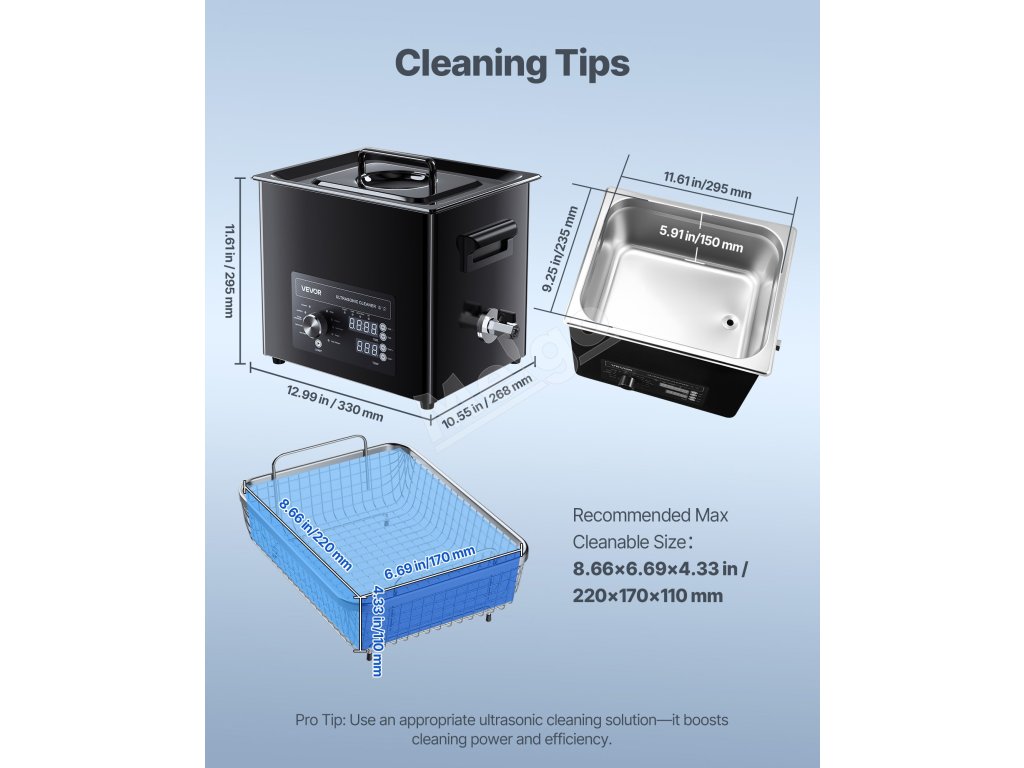 Ultrazvuková čistička 10 l nerez, ovládanie gombíkom, košík, guľa