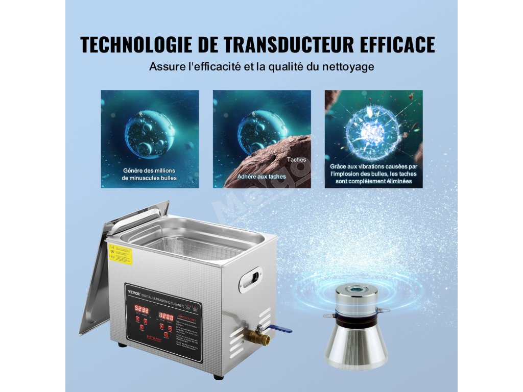 Sonická čistička využíva pokročilú technológiu snímačov a generuje 40kHz ultrazvukové vlny, ktoré vytvárajú milióny drobných bubliniek, účinne sa dostávajú k povrchom a štrbinám a dôkladne čistia nečistoty bez poškodenia vzhľadu alebo kvality predmetov.