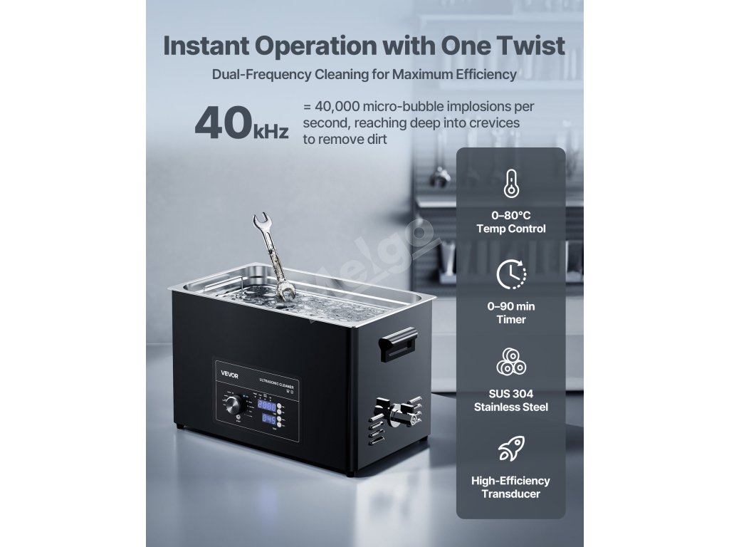 Ultrazvuková čistička 30L, nerez, otočné ovládanie, s košíkom