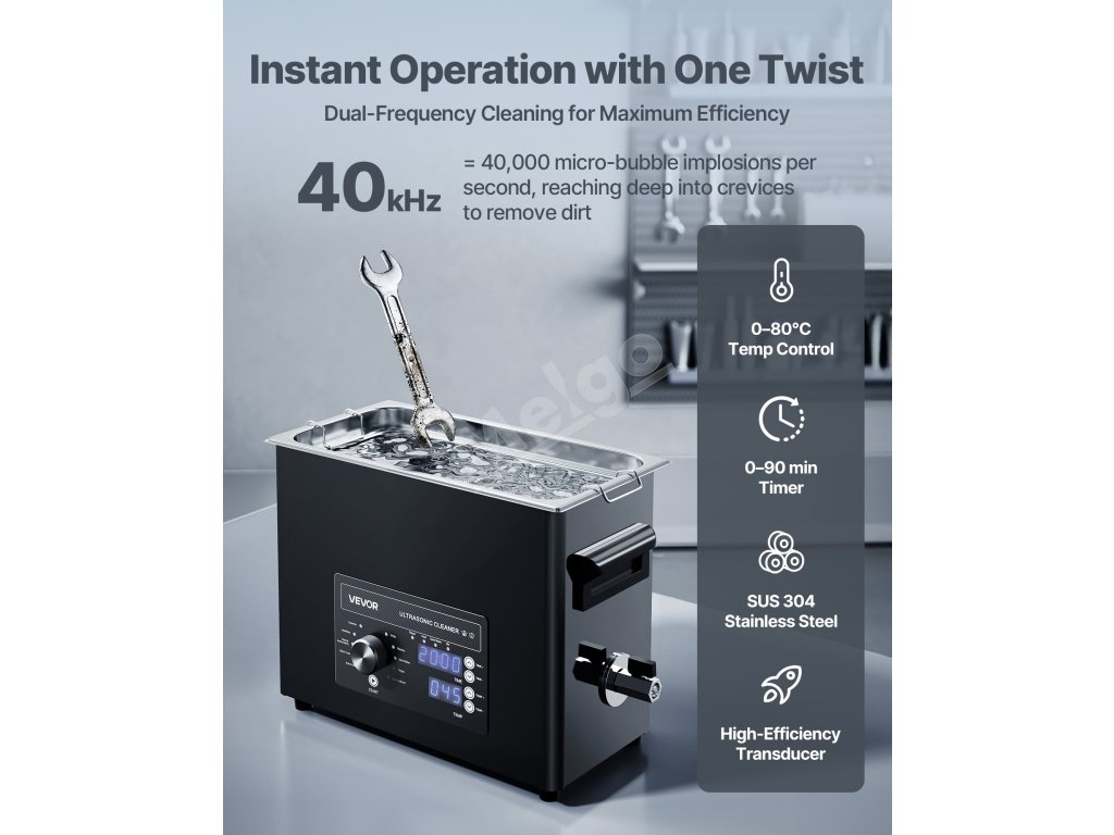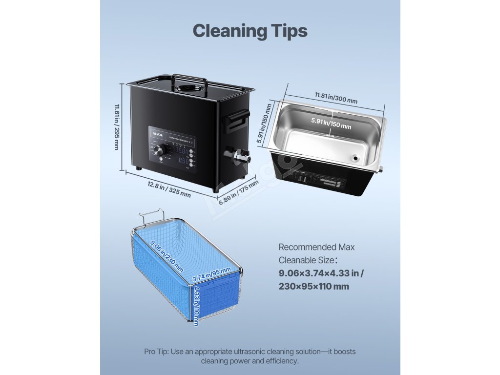 Ultrazvuková čistička 6L nerez s gombíkovým ovládaním a košíkom