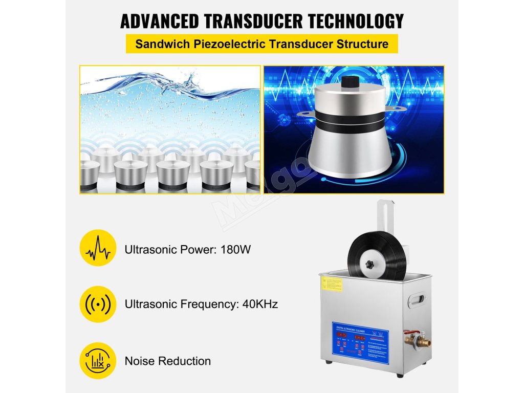 Vďaka ultrazvukovej frekvencii 40 kHz a silnému ultrazvukovému výkonu 180 W je naša ultrazvuková čistička vhodná najmä na čistenie predmetov so zložitými tvarmi, otvormi alebo odolnými nečistotami.