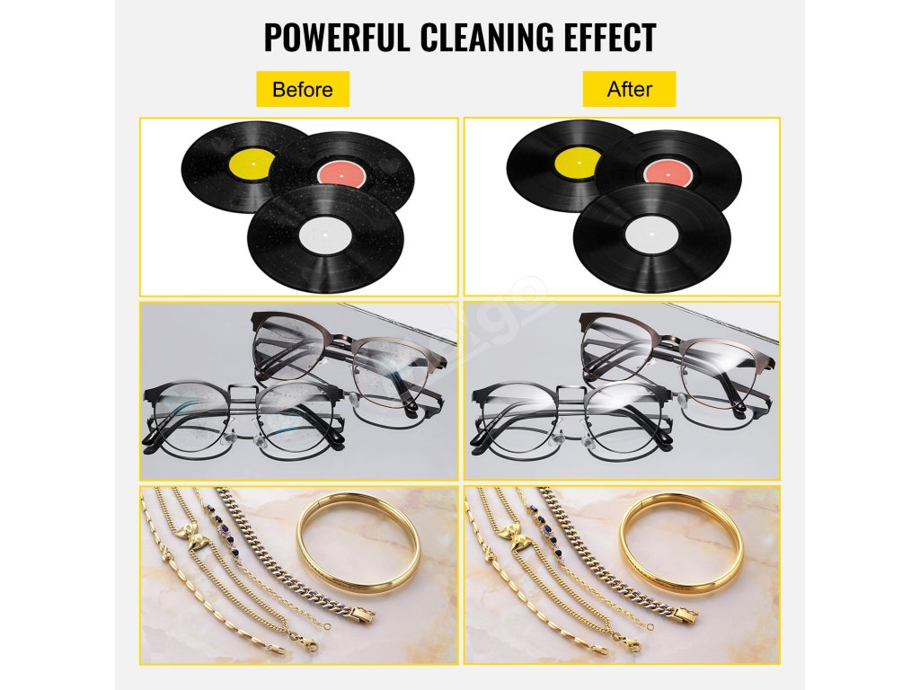 Táto 6-litrová ultrazvuková čistička je vybavená odnímateľným kovovým stojanom s vodotesným krytom štítkov, ktorý sa dá otáčať motorom na čistenie šiestich platní naraz a je vhodný na vinylové platne s veľkosťou od 7 do 12 palcov (17,78 - 30,48 cm).