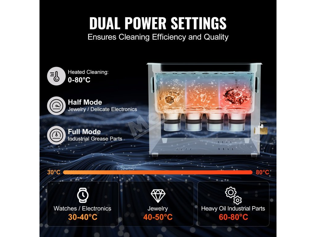 Tento sonický čistič je ideálny na komerčné aj osobné použitie vrátane čistenia karburátorov, dosiek plošných spojov, zubných nástrojov, šperkov, okuliarov, hodiniek, stolového riadu a ďalších.