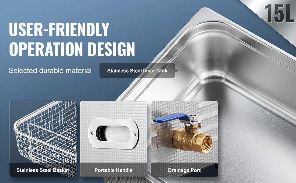 Tento ultrazvukový čistiaci prístroj, vyrobený z vysokokvalitných nádrží z nehrdzavejúcej ocele 304, zaručuje trvalú odolnosť a zároveň poskytuje konzistentné výsledky čistenia, čím vám ponúka dlhodobý používateľský zážitok.