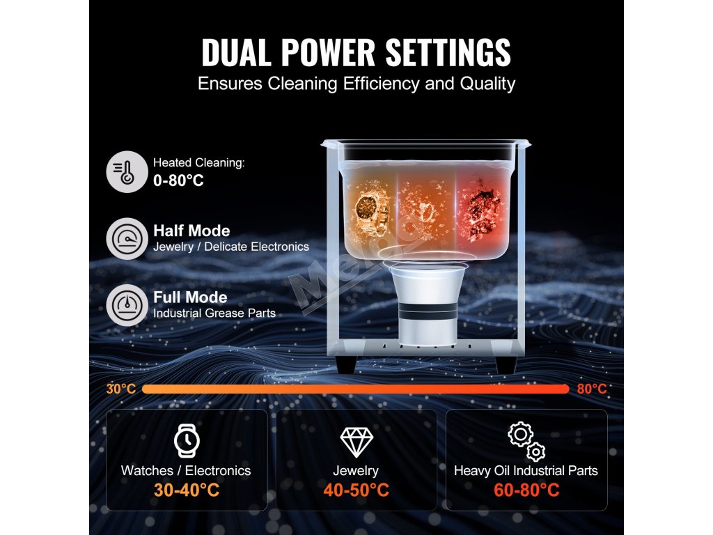 Tento sonický čistič je ideálny na komerčné aj osobné použitie vrátane čistenia karburátorov, dosiek plošných spojov, zubných nástrojov, šperkov, okuliarov, hodiniek, stolového riadu a ďalších.