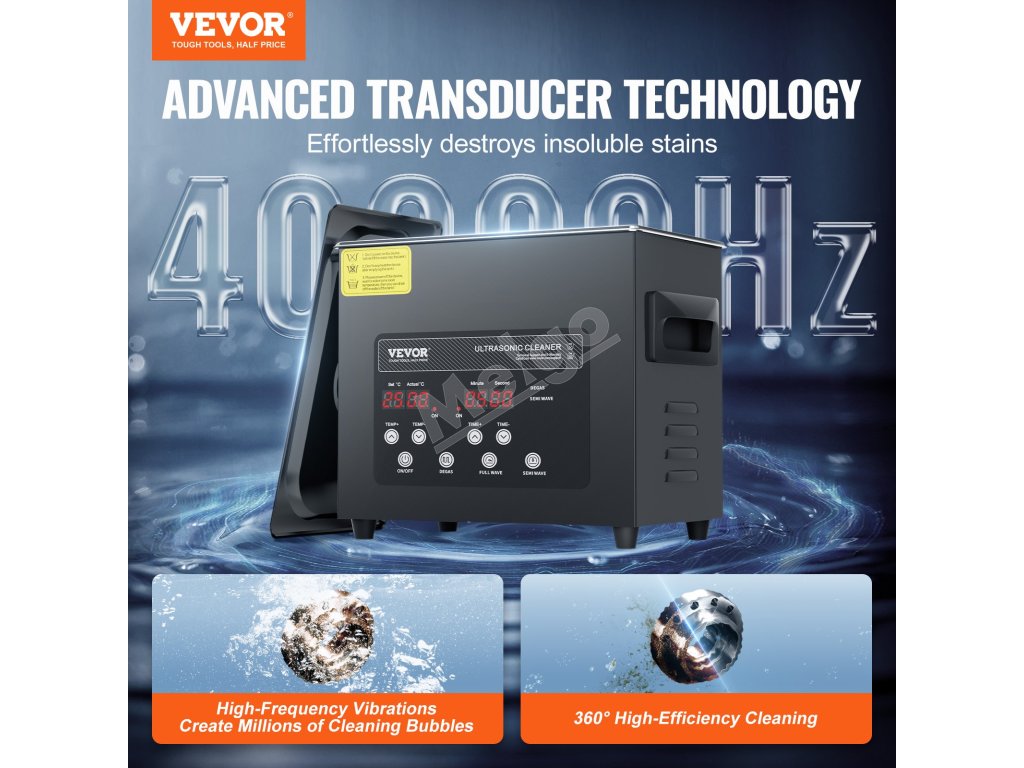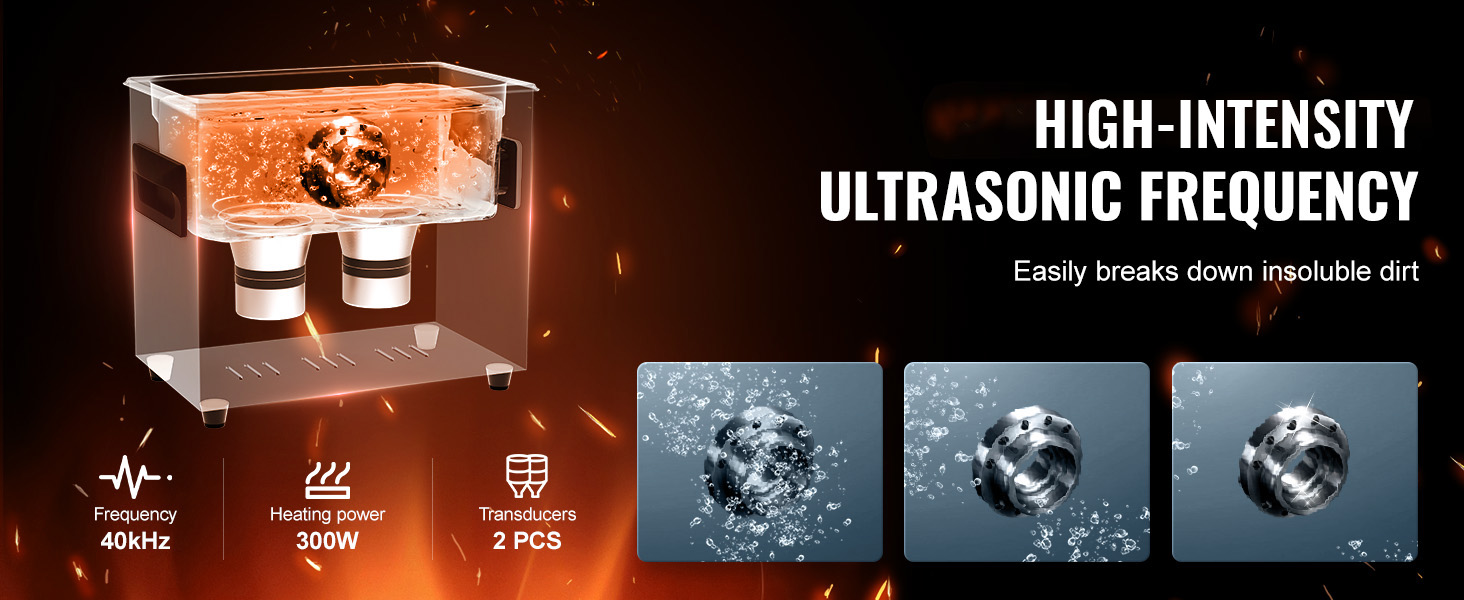 Vďaka pokročilej technológii snímača vytvárajú ultrazvukové vlny s frekvenciou 40 kHz milióny drobných bubliniek, ktoré sa dostanú hlboko do povrchov a štrbín a účinne odstraňujú nečistoty bez toho, aby poškodili vzhľad alebo kvalitu predmetu.
