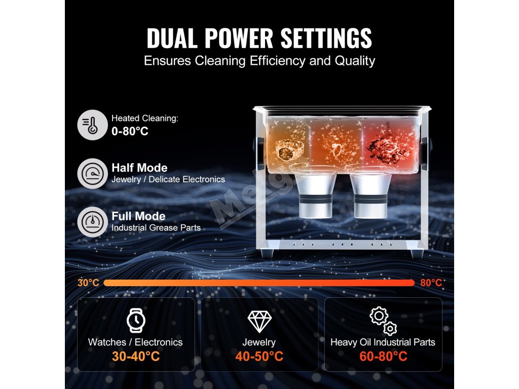 Tento sonický čistič je ideálny na komerčné aj osobné použitie vrátane čistenia karburátorov, dosiek plošných spojov, zubných nástrojov, šperkov, okuliarov, hodiniek, stolového riadu a ďalších.