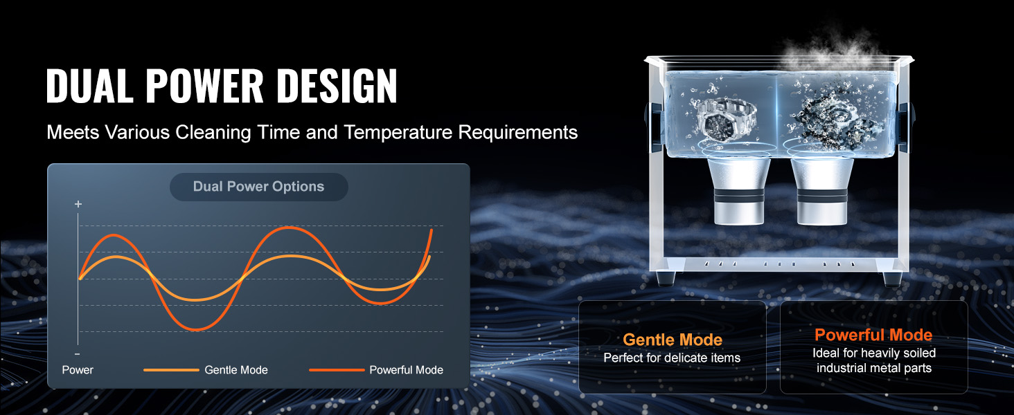 Režim odplyňovania odstraňuje veľké bubliny na hĺbkové čistenie vnútorných otvorov a štrbín, čím sa dosahuje presné čistenie v nulovom uhle a zvyšuje sa účinnosť čistenia o 30 %. Dvojitý režim výkonu ponúka možnosť šetrného čistenia na ochranu chúlostivých predmetov.