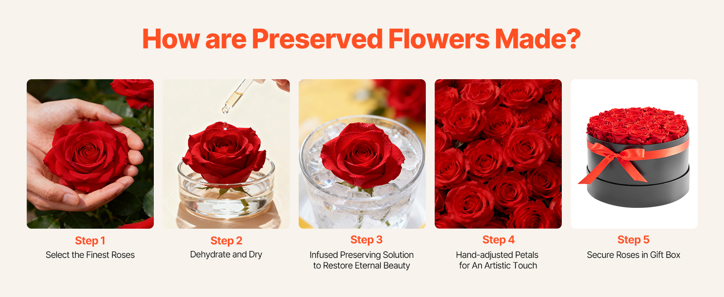 Vyrobené z pravých ruží pomocou profesionálnych konzervačných techník, každý navždy kvet je podopretý stabilným rámom, zostáva živý a elegantný pre dlhodobý pôžitok.