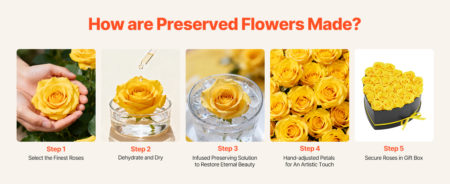 Vyrobené z pravých ruží pomocou profesionálnych konzervačných techník, každý navždy kvet je podopretý stabilným rámom, zostáva živý a elegantný pre dlhodobý pôžitok.