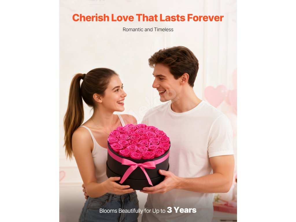 Tieto večné ruže sú vyrobené zo 100 % pravých ruží s plnými kvetmi a žiarivými farbami, nevyžadujú zalievanie ani slnečné svetlo a každú oslavu premenia na trvalú romantickú spomienku.